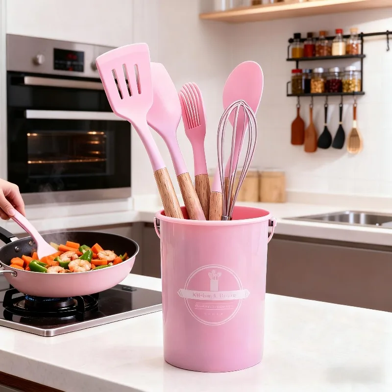 12PCS Cooking Tool Kitchen Cookware Utensils Food Grade Silicone Turner Spatula Measuring Spoon Practical Kitchenware Set