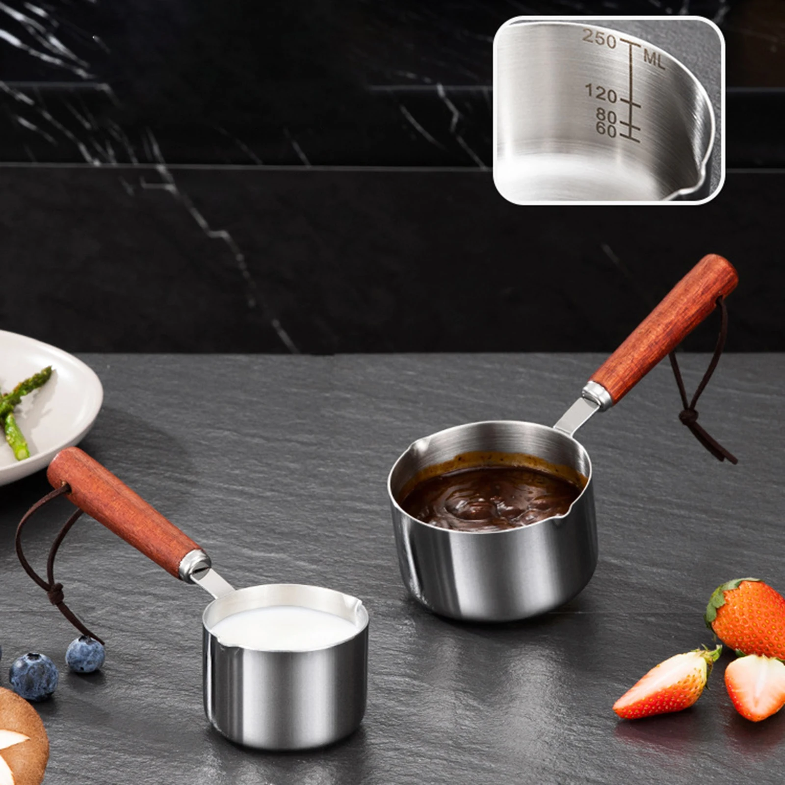 304 Stainless Steel Mini Soup Pot with Wooden Handle Condiment Sauce Pan Small Saucepan for Making Sauces Heating Milk Kitchen