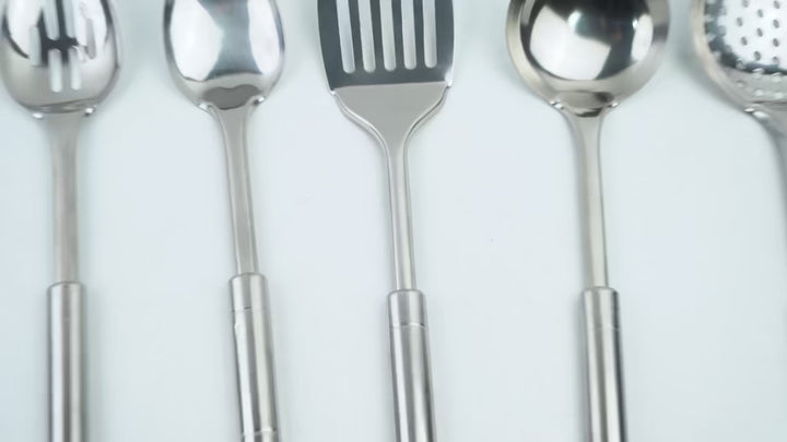 This 5/10Pcs Kitchen Cookware Cooking Utensils Set is made of high-quality stainless steel, which ensures durability and long-lasting use. Each utensil is designed to withstand daily wear and tear in the kitchen, making them a reliable choice for all your cooking needs.