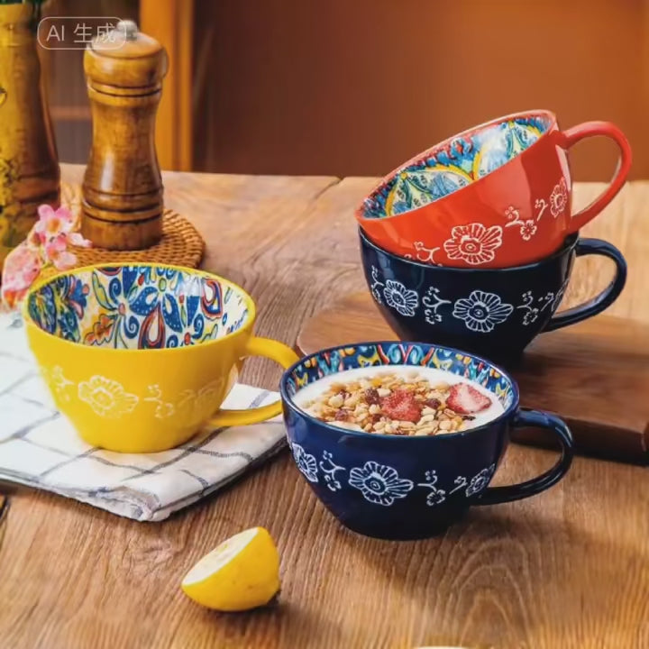 Start your day off right with our Bohemian Morning Tea Mug. This 13.5 oz ceramic coffee mug is the perfect size for enjoying your favorite hot beverage in the morning. Whether you're sipping on tea, coffee, or hot chocolate, this mug is sure to add a touch of style to your morning routine. The unique bohemian design will bring a pop of color to your kitchen and brighten up your day.