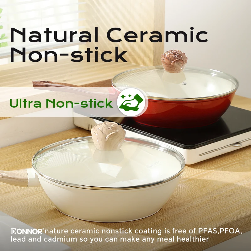 DONNOR Nonstick Ceramic Frying Pan Skillet 3.6L Frying Pan Skillet with Lid Ceramic Skillets PFAS-Free Heat Resistant Handle