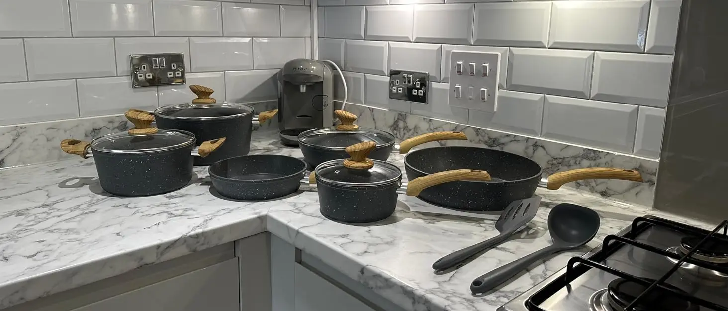 5. ๐๐ญ๐ฆ๐ช๐๐จ๐๐ฉ๐ ๐๐๐ข๐ข๐๐ง ๐๐ง๐๐ฃ๐ฉ: Tired of boring cooking? ย cookware sets design with a hammer print, enhances the artistic sense of the kitchen, when you use these pots and pans, you are more in the mood to prepare every meal. Ideal housewarming gift, Christmas gift etc for family and friends