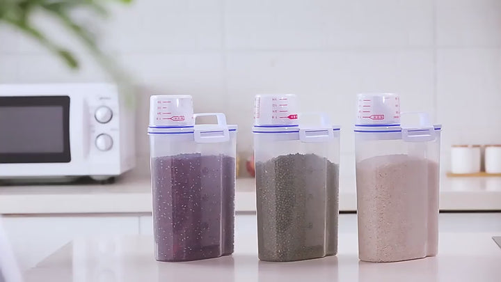 Kitchen Cereal & Rice Storage Box with Measuring Cup