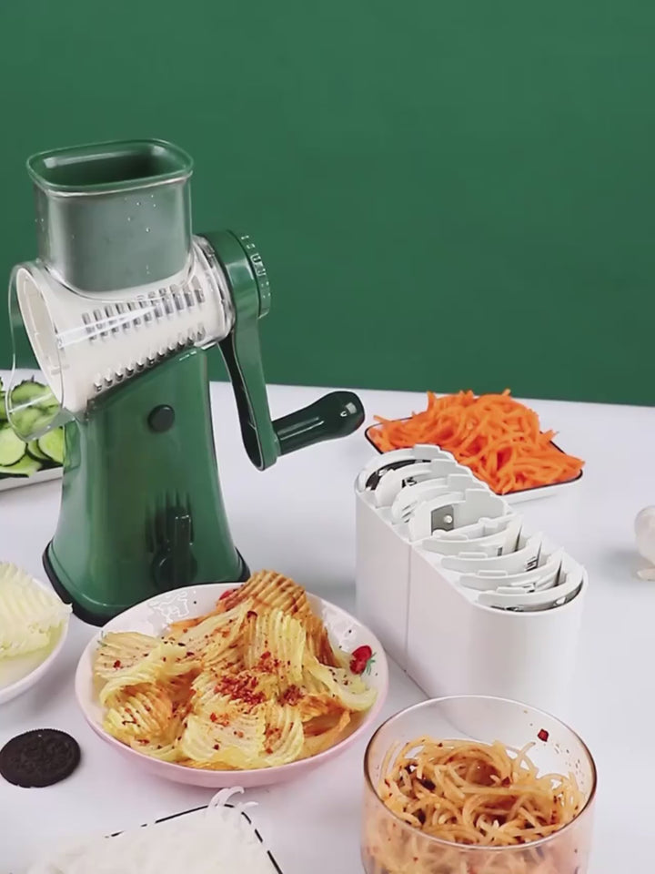 LMETJMA 5 in 1 Rotary Cheese Grater Shredder Kitchen Mandoline Vegetable Julienne Slicer Waffle Cutter Nut Chopper JT247