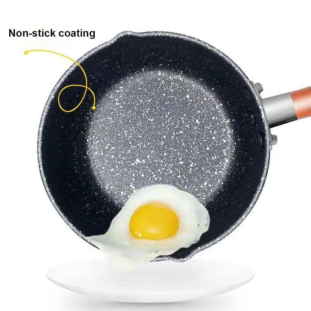 Non-Stick Sauce Pan Soup Pot with Pour Spout Milk Saucepan Wooden Handle Stick Proof Sauce Pan 14cm for Home Kitchen