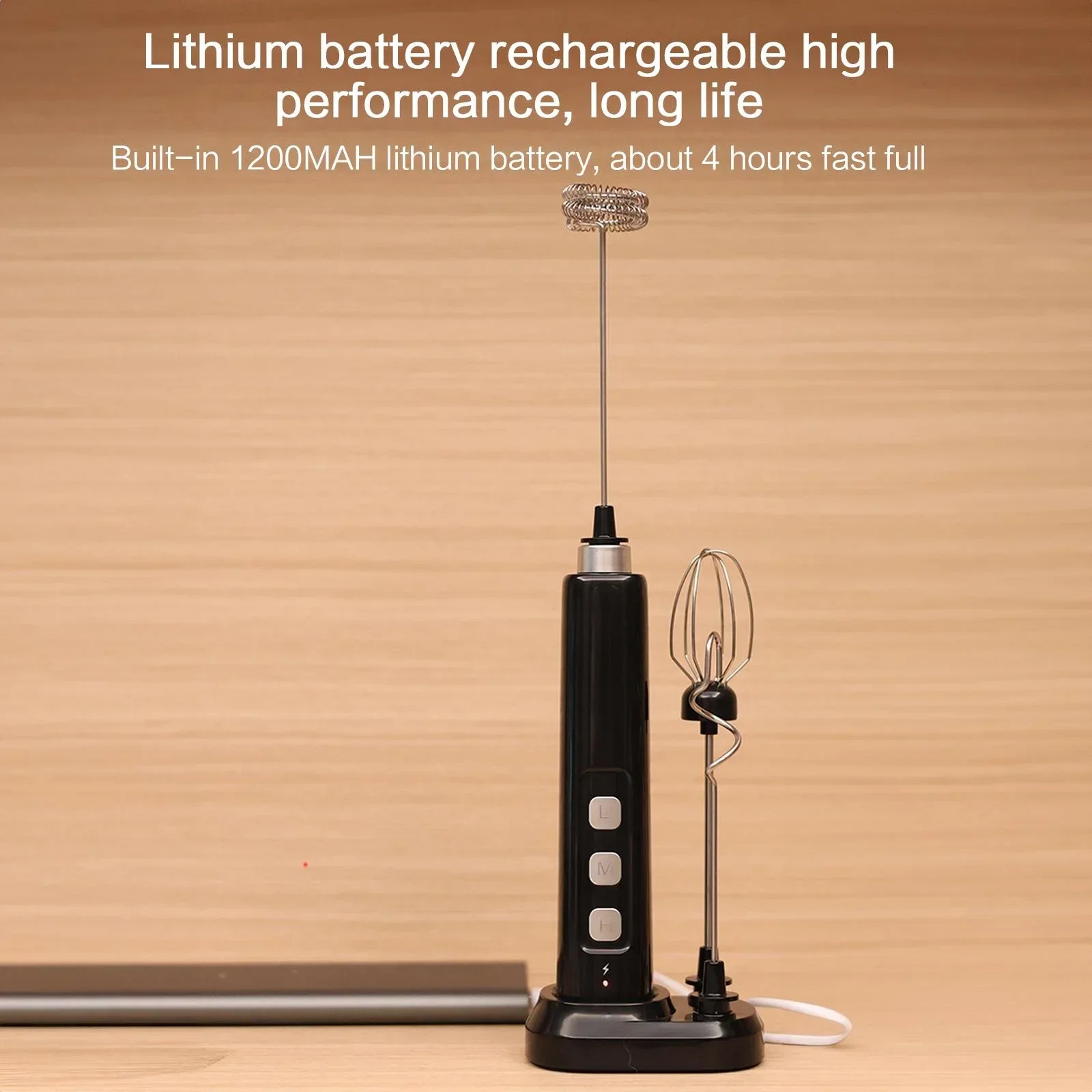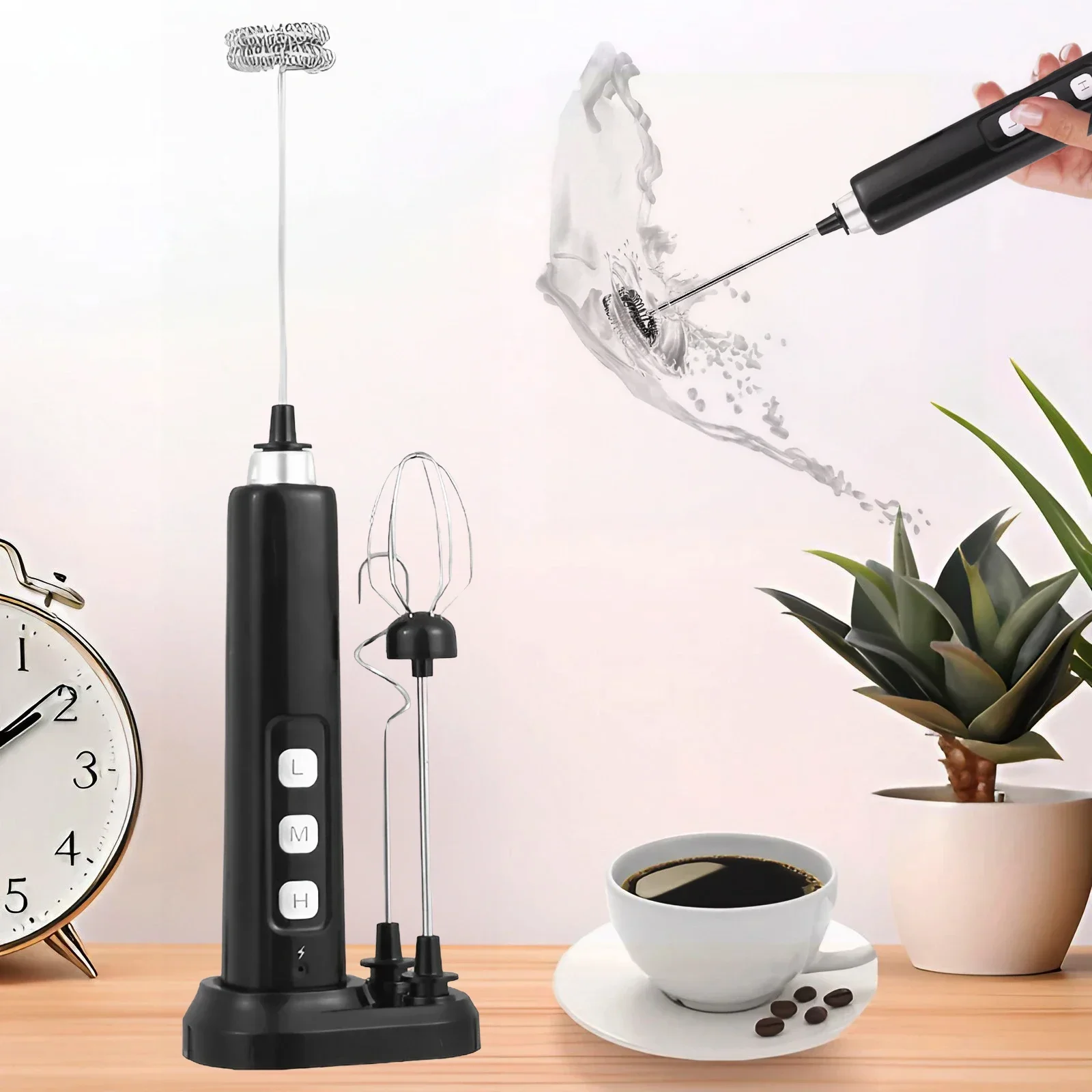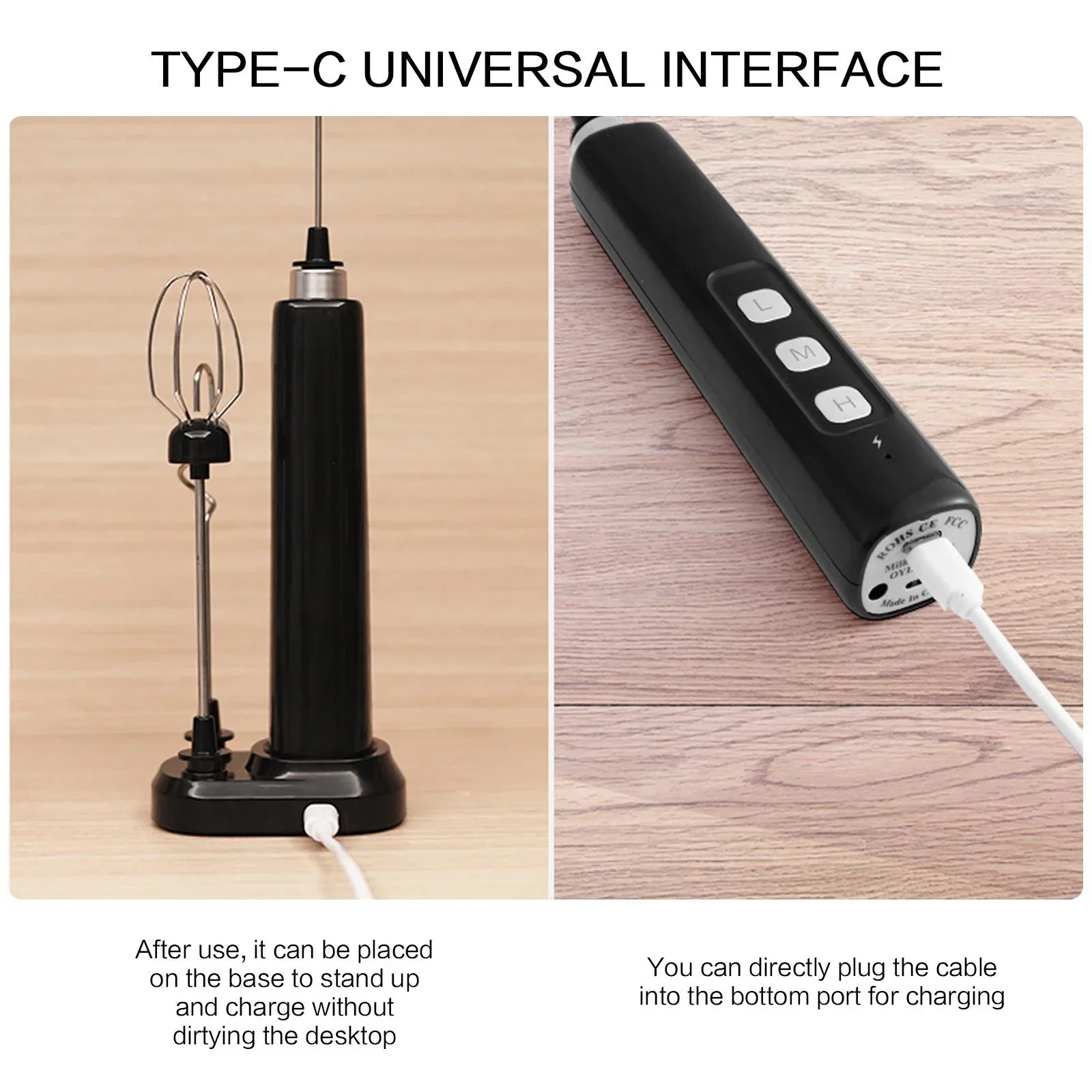 This mixer supports two charging methods: you can place it on the base for vertical charging or connect the charging cable directly to the bottom of the mixer. It's flexible and convenient, allowing you to charge anytime, anywhere.