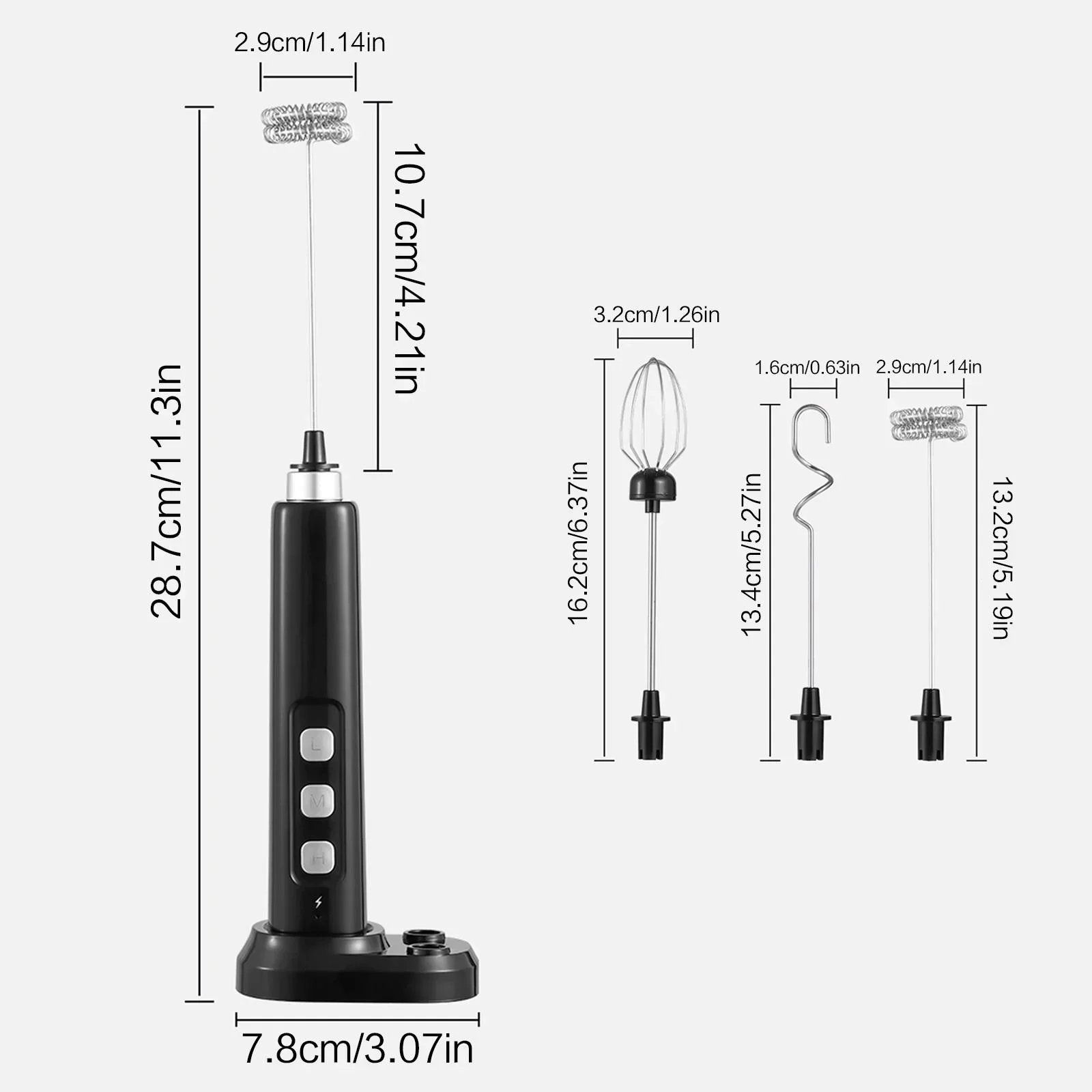 Package Includes Main Unit + Dual Beater Head + Whisk Head + Stirring Head + USB Cable + Charging Dock + English Instruction Manual