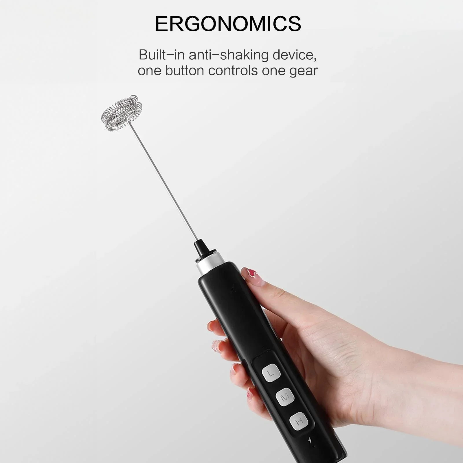 This electric mixer features a powerful motor with three adjustable speeds: 3500RPM, 8500RPM, and 15000RPM. Whether you're frothing milk or whipping eggs, it easily meets your needs, helping you create perfect dishes in the kitchen.
